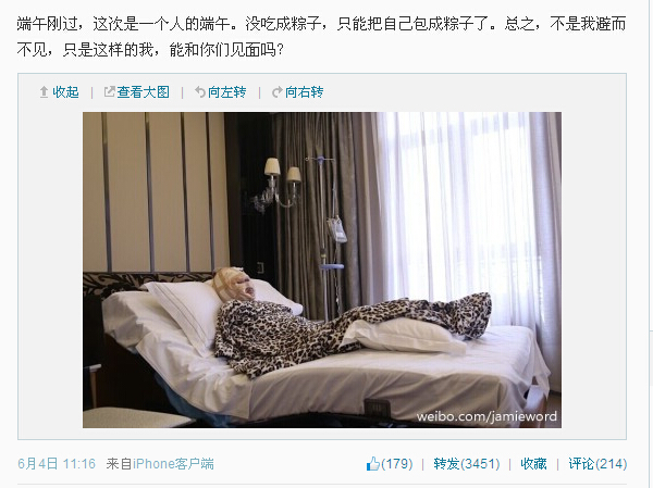 6月4日 11:16 端午刚过,这次是一个人的端午。没吃成粽子,只能把自己包成粽子了。总之,不是我避而不见,只是这样的我,能和你们见面吗?