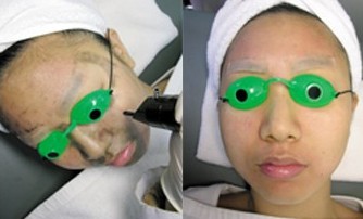 大概4、5分钟后,医生帮我抹去浅层的碳粉层,然后拿起激光抬头在我脸上操作。