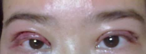 因为怕色素沉淀,到现在没有敢化妆,所以照片大家凑合着看吧。不过我发现,正面的眼睛照片真的显得我鼻子好低,虽然确实很低。。。照片没有扬我长避我短,也是为了众亲们看到真实效果。看吧,我连色相都牺牲了,(*^__^*)嘻嘻……一句俗得不能再俗的话:话不多说,上图!(让我想起:翠花~上酸菜~~哈哈……)附上:做之前的照片,让你们看看眼睛够不够肿。