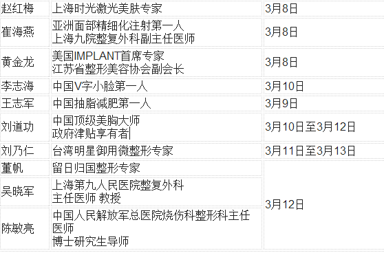 3月整形大咖亲诊时间